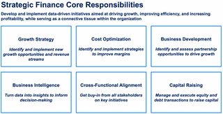 The Strategic Finance team’s core responsibilities can be summarized as follows: