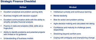 The first step to building a Strategic Finance team is to hire a strong leader. This can be a Head of Finance or VP of Finance with strong strategic and analytical chops. If Finance leadership is already in place (i.e., CFO), companies will hire a Head of Strategic Finance or VP Strategic Finance. This person ideally has at least 6-8 years of work experience and checks every box on the Strategic Finance Checklist: